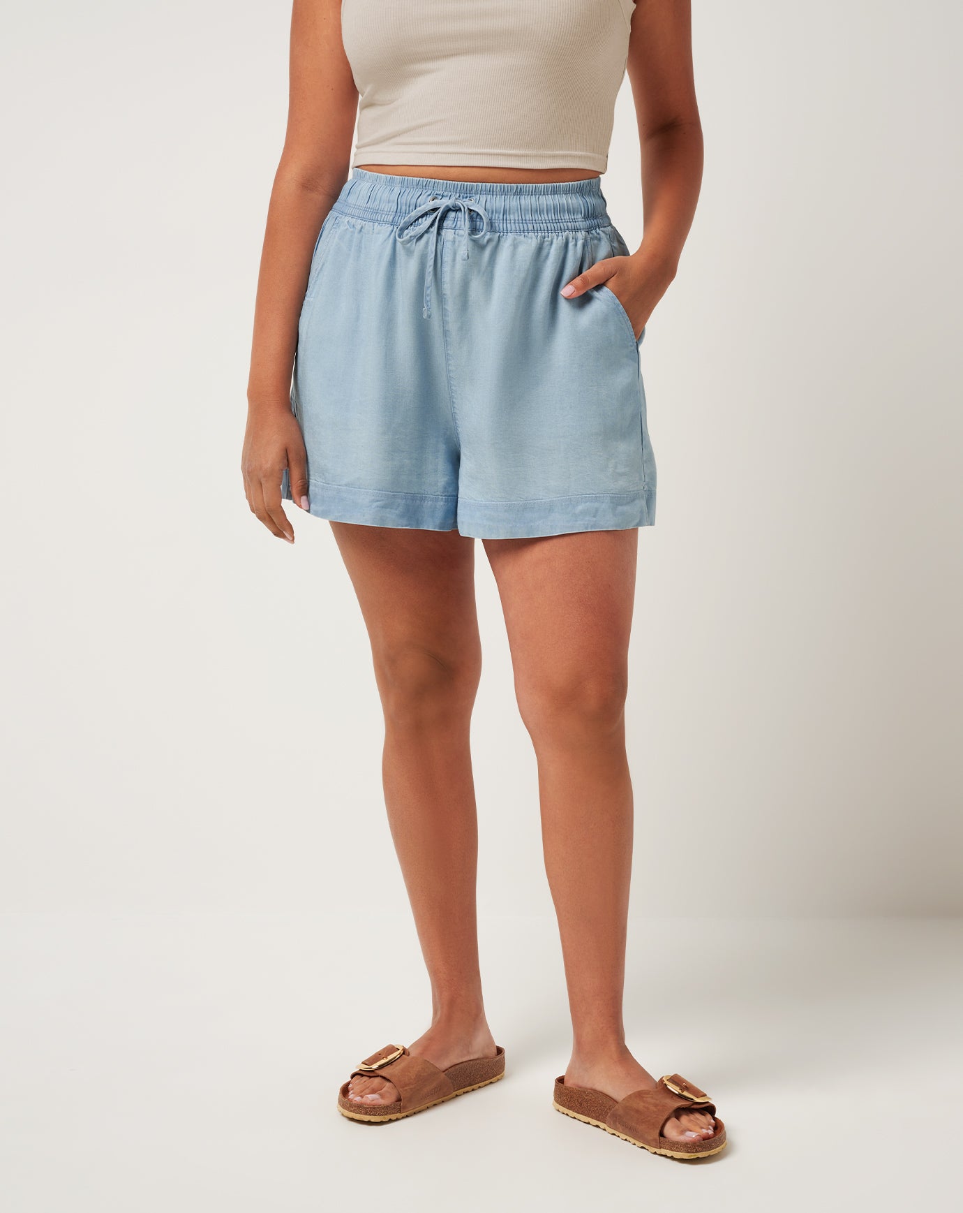 - Elastic-waist drawstring short