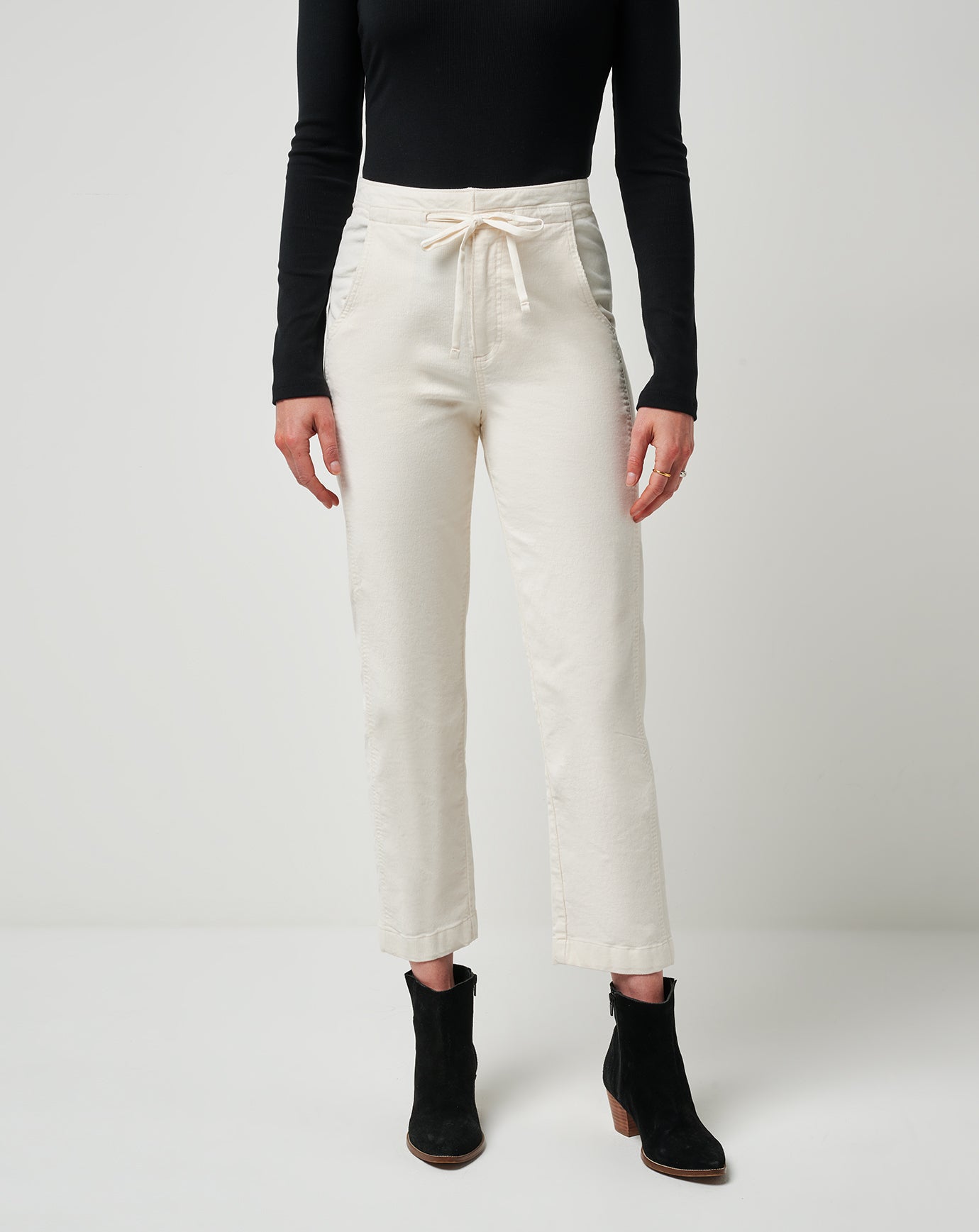 - Corduroy pants with satin drawstring at waist