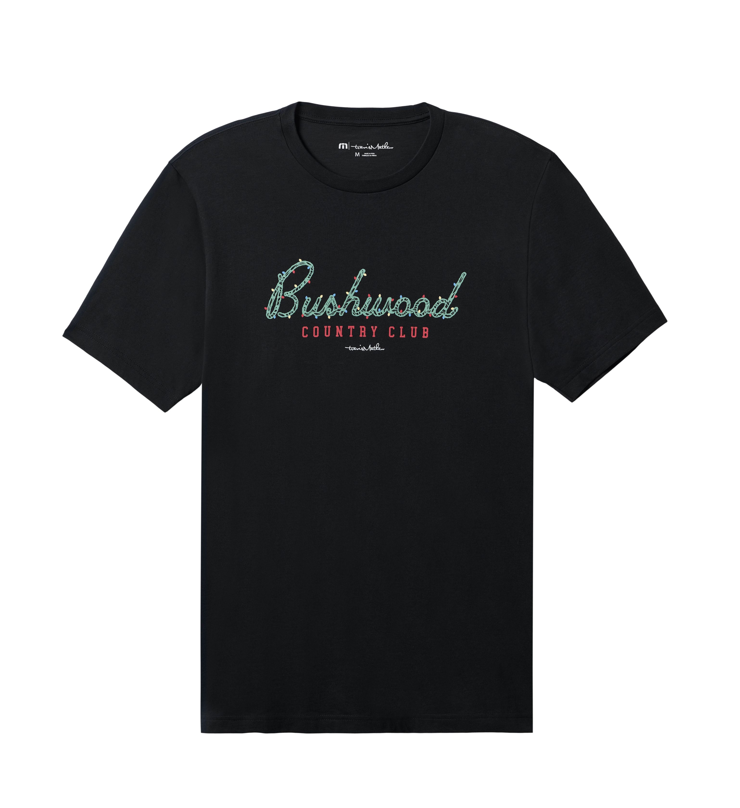 Represent your favorite country club in the WINTER STORM t-shirt. complete with the iconic Bushwood CC logo. updated with holiday lights for a festive variation of a favorite design.